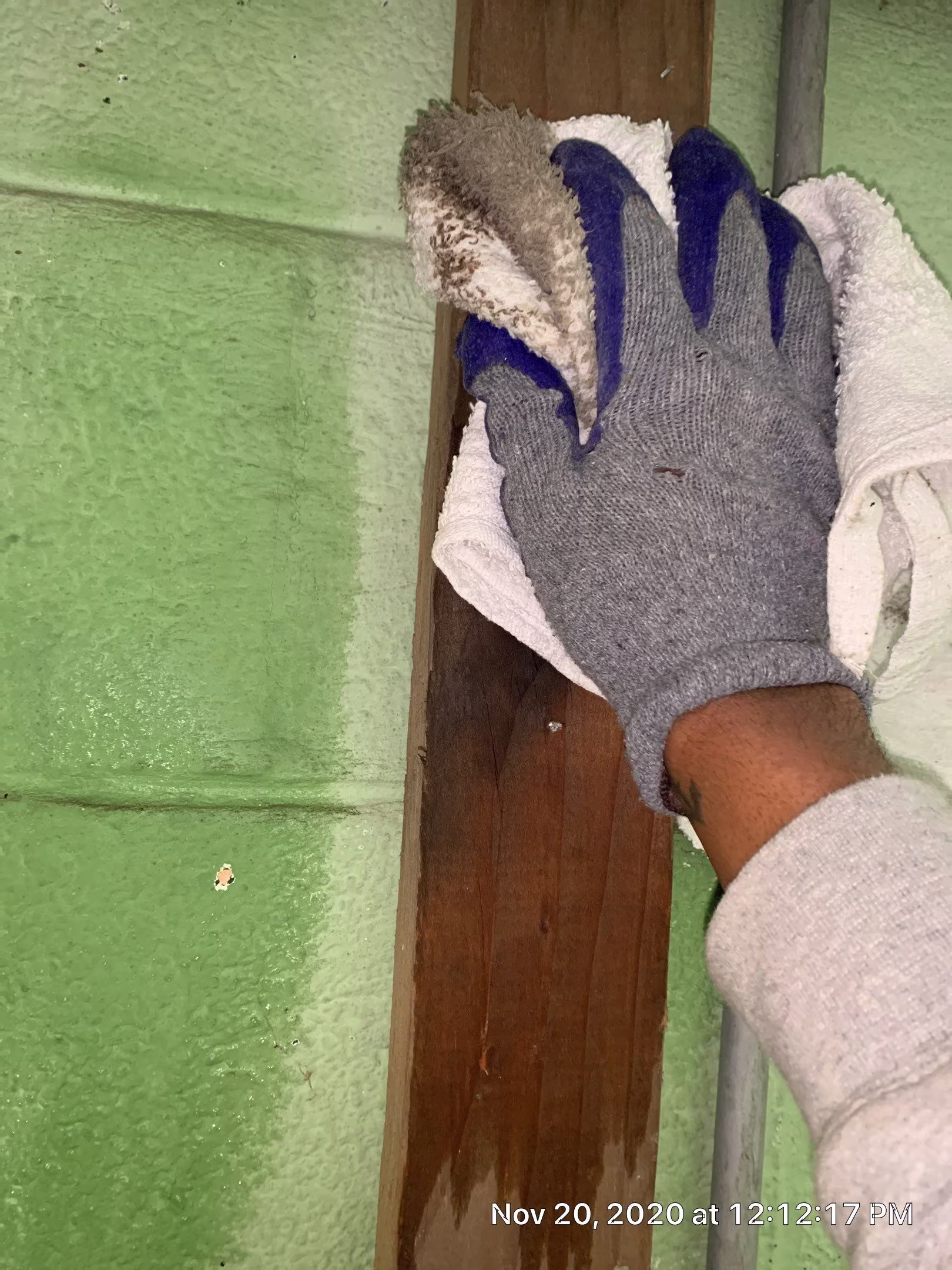 When we got to the home, we could see the problem right away. Water had been coming in through the basement walls because the gutters weren’t directing rainwater far enough from the foundation. That extra moisture created the perfect spot for mold to grow. It had spread along the block walls, behind the drywall, and into the framing. The basement smelled musty, and dark patches of mold were easy to spot in several areas. The drywall was soaked through and couldn’t be saved. We knew we needed to strip the walls down, clean everything, and treat the space before it got any worse.