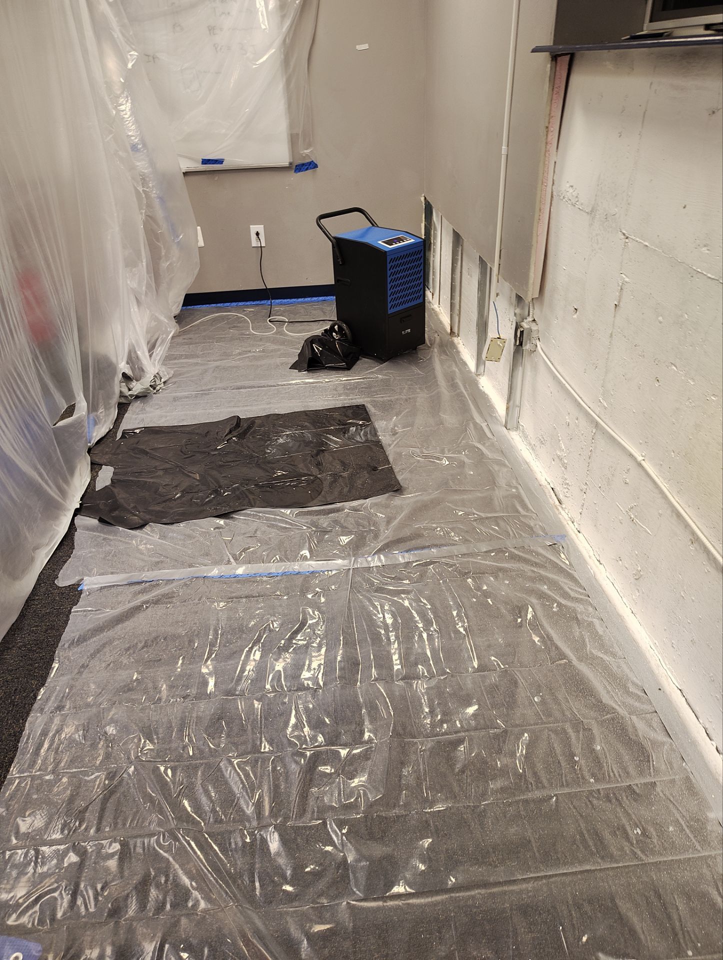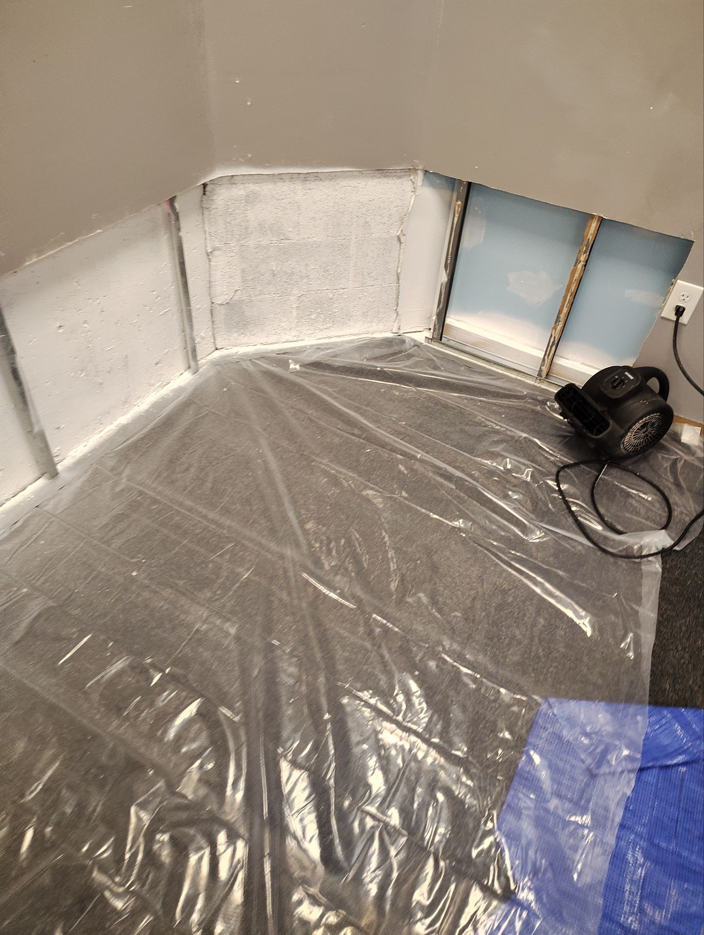 The inside of the ductwork is now clean and shiny with no dirt or mold left behind. The walls in the affected rooms have been sealed with a white protective coating, and dehumidifiers are running to keep moisture levels low. The school now has a clear plan to stop future water problems before they start.